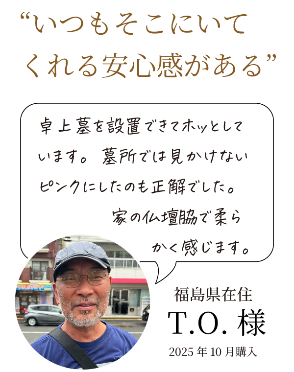 卓上墓の置き場所でこうしなければならないという決まりはありません。お好きな場所に置いていただけたらと思います。